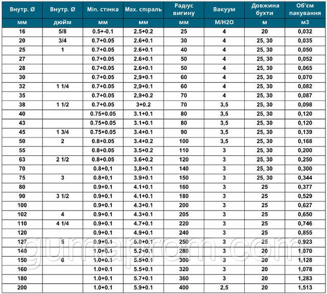 Структура і колір: Складається з прозорої пластикової стінки з ПУ та жорсткої ПВХ спіралі, яка може бути сірою, чорною або білою. Внутрішня поверхня стінки достатньо гладенька, тоді як зовнішня має ребристу, сильно рифлену текстуру. На замовлення можливий інший колір спіралі та стінки.